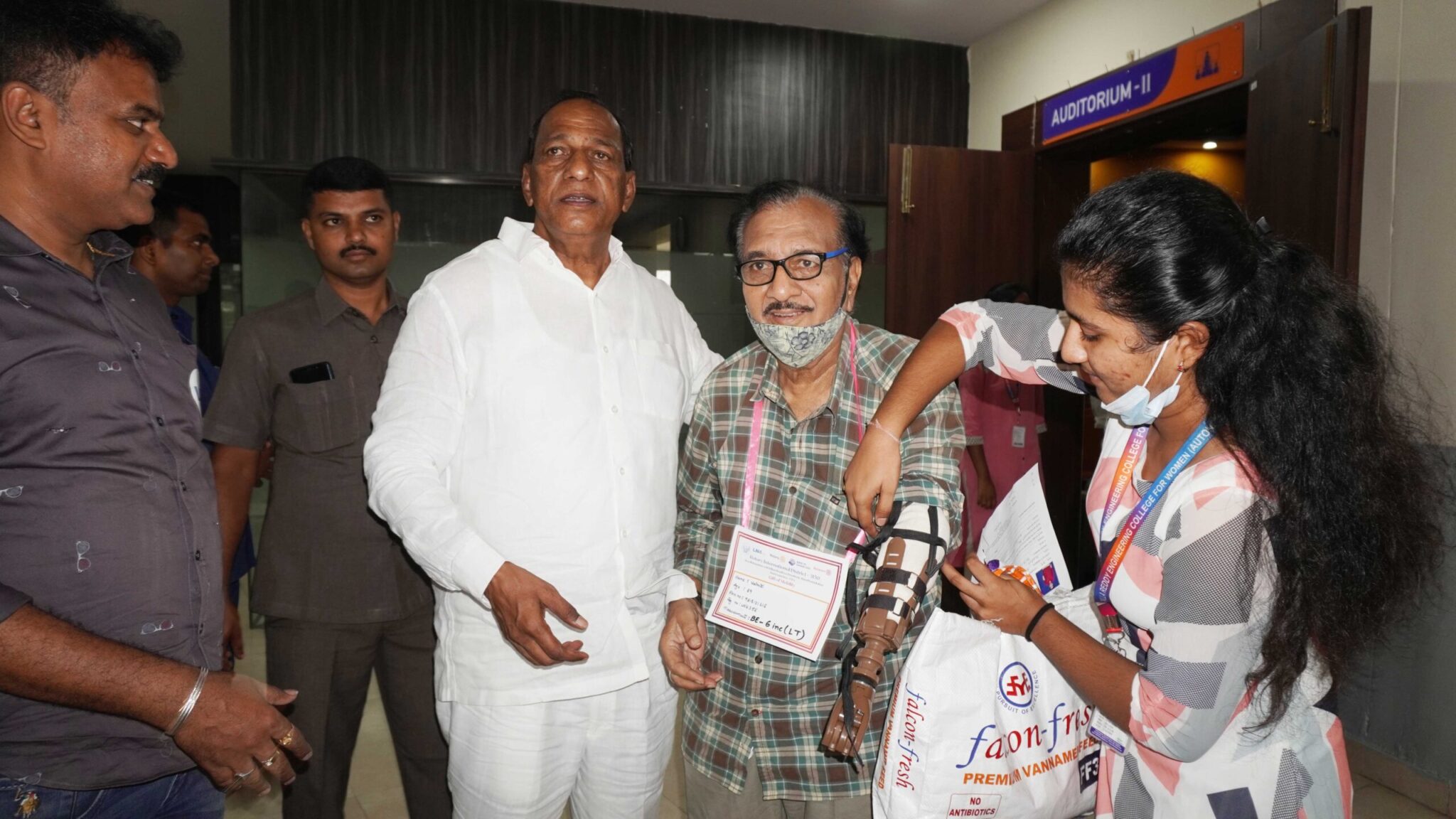 Ch Malla Reddy seen with a beneficairy who received LN 4 Prosthetic Hands at the Camp the biggest ever in India